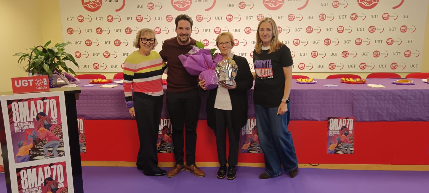#8M 2026 Coruña concentración Praza Cigarreiras Entrega distinción Coruña Manifestación #8M Coruña Distinción Coruña Lectura manifesto Ourense Concentración Ourense Entrega distinción Ourense Entrega distinción Pontevedra Homenaxeada Pontevedra Concentración Santiago Foto grupo Santiago Entrega distinción Santiago Acto Santiago Entrega distinción Vigo Manifestación #8M Vigo Batucada #8M Vigo Manifestación Vigo Manifestación Vigo Concentración Vigo Manifestación Vigo Xornada Vigo Foto grupo Ferrol Entrega distinción Ferrol Acto Lugo Acto Lugo
